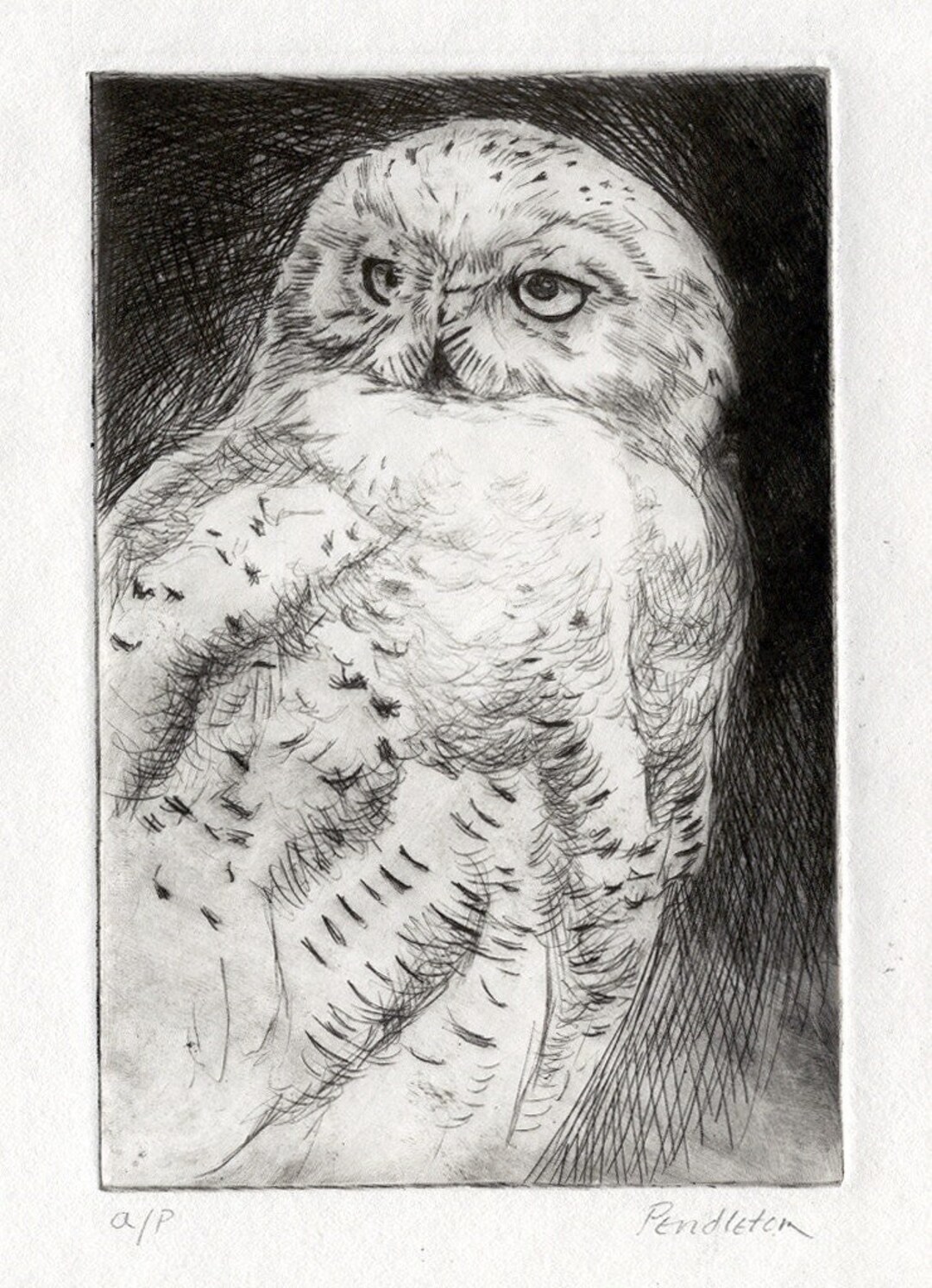 Snowy Owl Drypoint Owl Hedwig Etching Drypoint Limited Etsy Uk